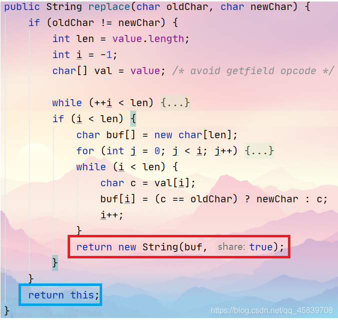 假如与原来相比没有变化,则直接返回原字符串;假如发生了变化,则新建一个字符串返回