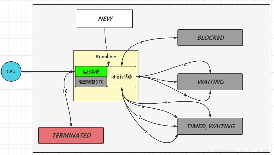 线程所以代码运行完毕 RUNNABLE <--> TERMINATED