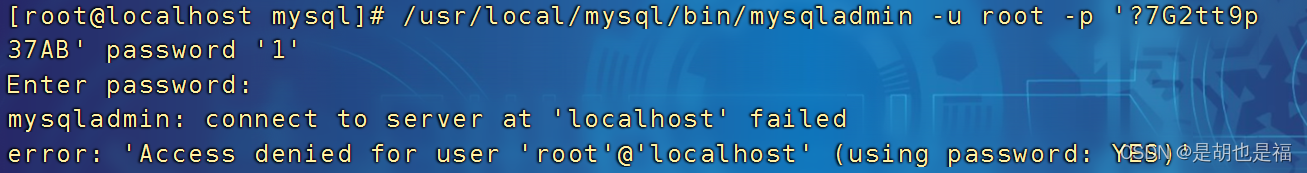 /usr/local/mysql/bin/mysqladmin -u root -p'?7G2tt9p37AB' password '1'