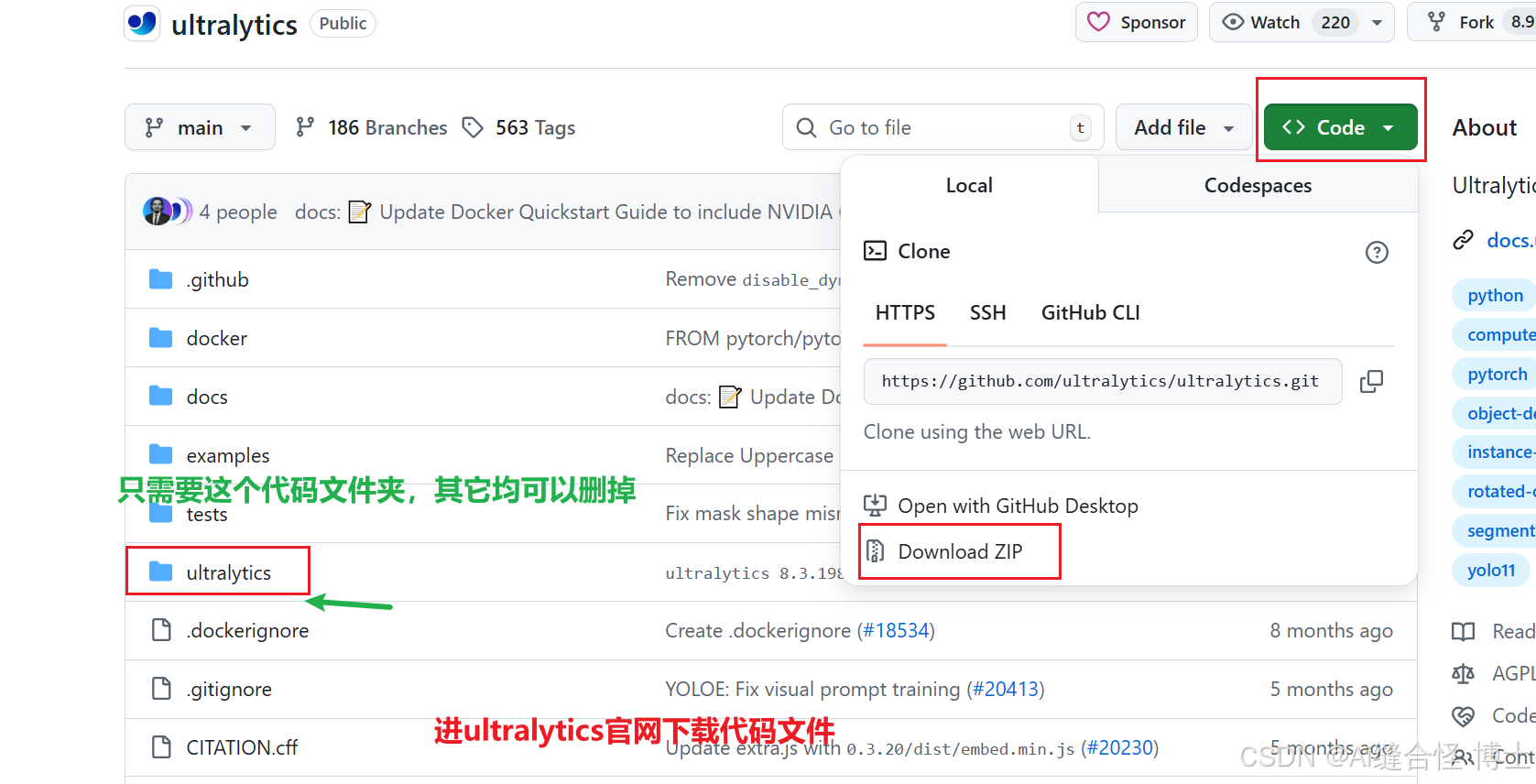 下载源码地址:ultralytics/ultralytics: Ultralytics 🚀