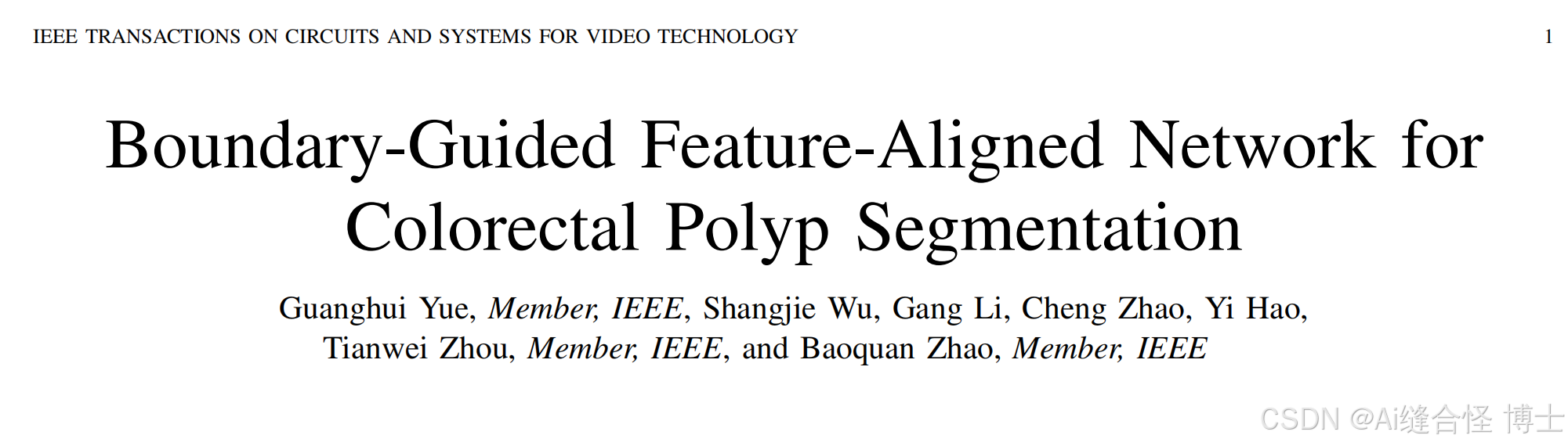 摘要:结直肠息肉在内镜图像中的分割对于结直肠癌的预防和治疗至关重要。由于息肉与其周围组织的高度相似性,大多数基于深度神经网络(DNN)的方法常常在处理模糊边界时遇到困难,导致分割结果不够精确。本文提出了一种边界引导特征对齐网络(BFNet),通过引入边界预测任务作为辅助,以提升息肉分割的效果。首先,BFNet聚合来自主干网络不同层的多层特征,以挖掘边界线索。其次,在每一层中引入了灵活特征聚合模块(Flexible Feature Aggregation,FFA),以自适应地融合跨层特征,实现对息肉的粗定位。在FFA模块中,针对不同层特征之间存在的空间错位问题,通过**可变形卷积(Deformable Convolution)和灵活融合块(Flexible Merge Block)将高层特征对齐并与当前层特征融合。随后,应用边界引导特征增强模块(Boundary-guided Feature Enhancement,BFE)**来进一步细化边界区域的定位。在BFE模块中,借助边界线索