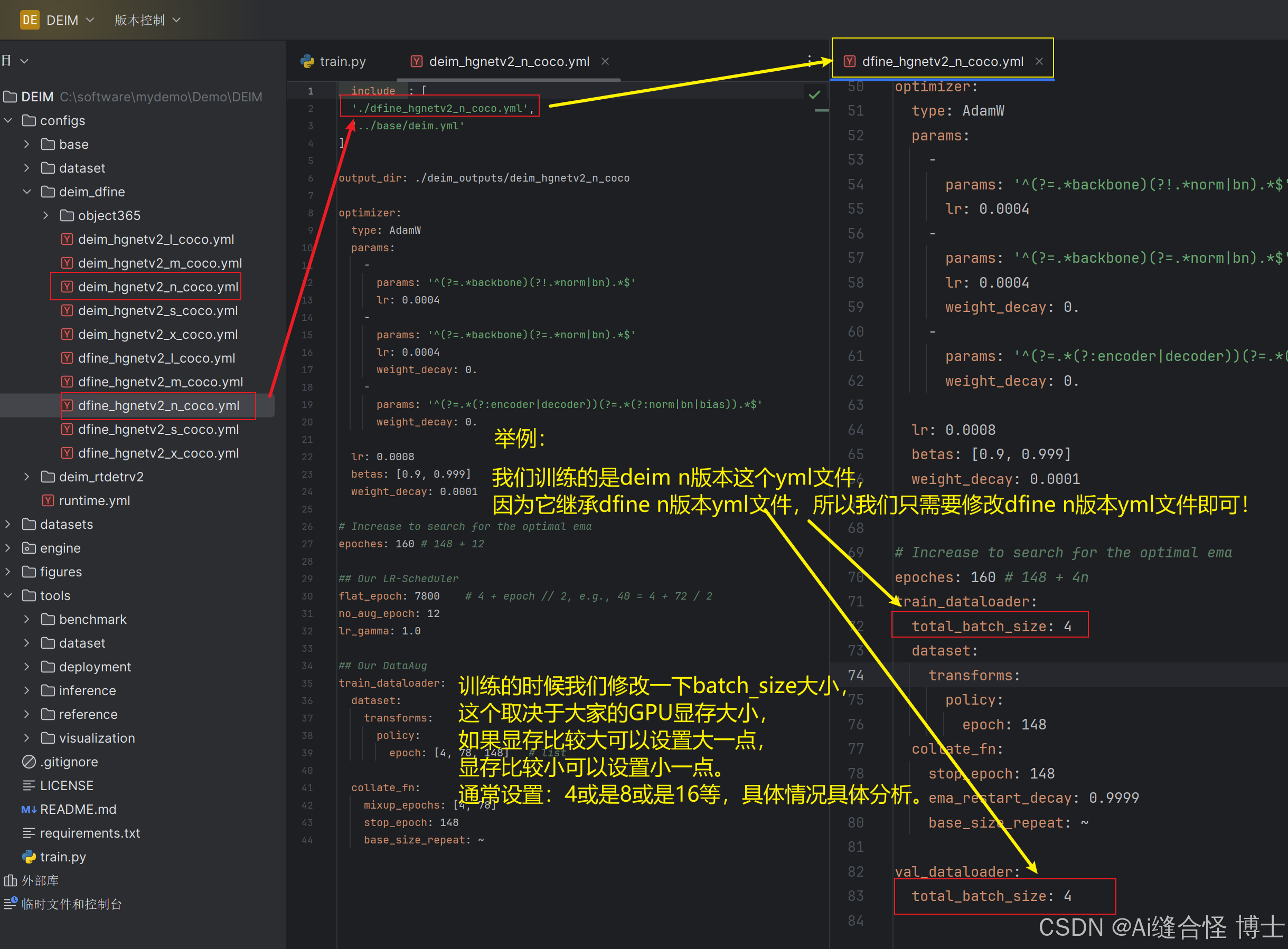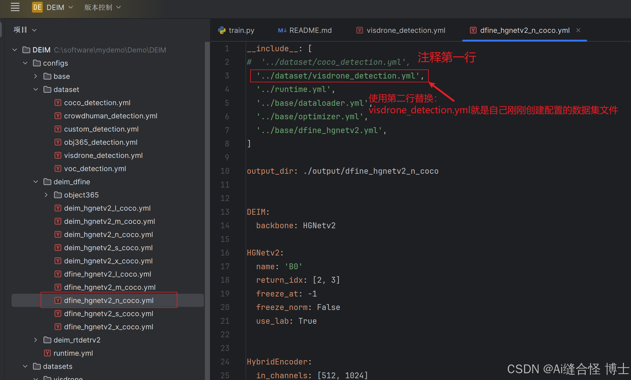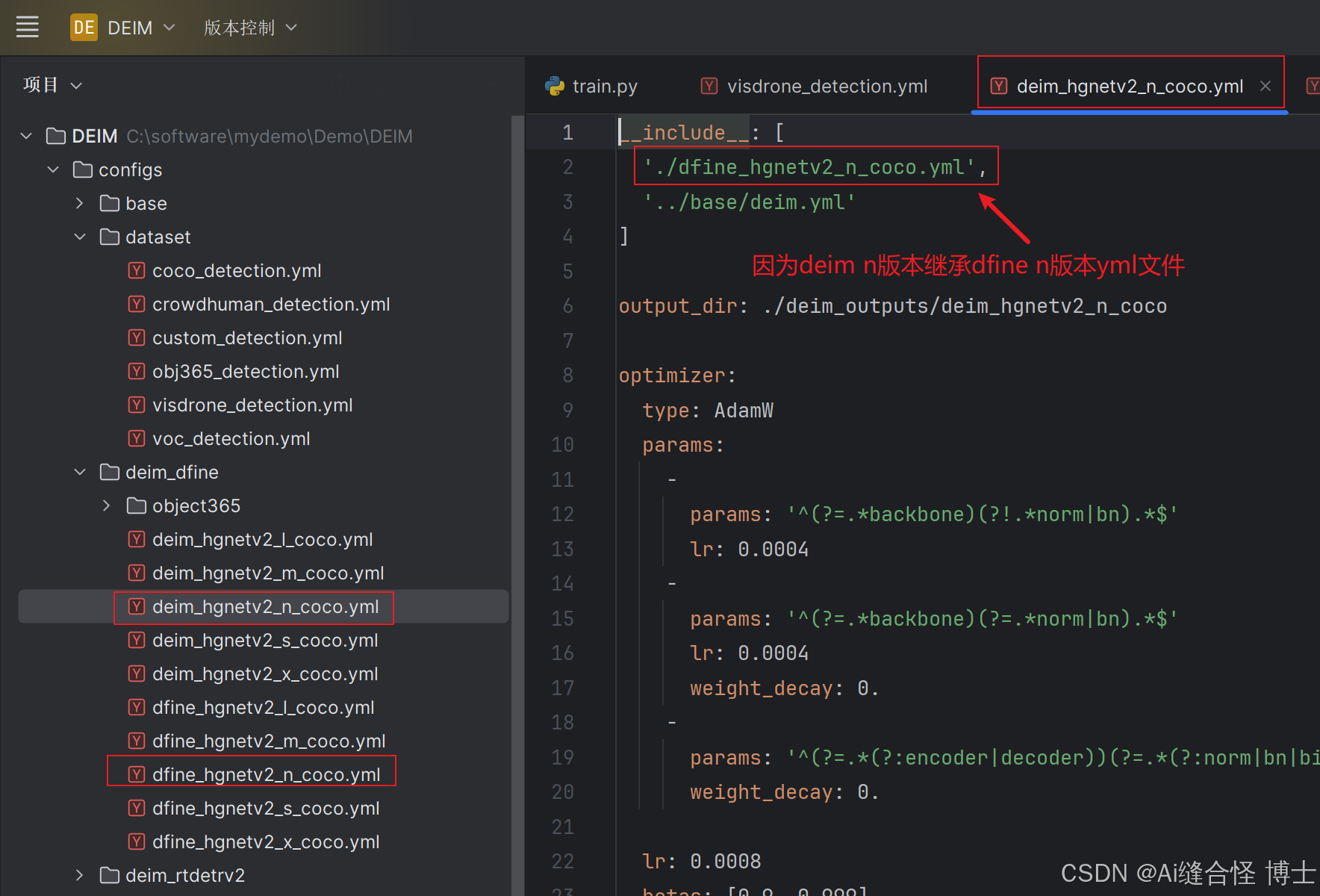 我们跑deim_hgnetv2_n_coco.yml为例子,所以我们就修改dfine_hgnetv2_n_coco.yml文件!