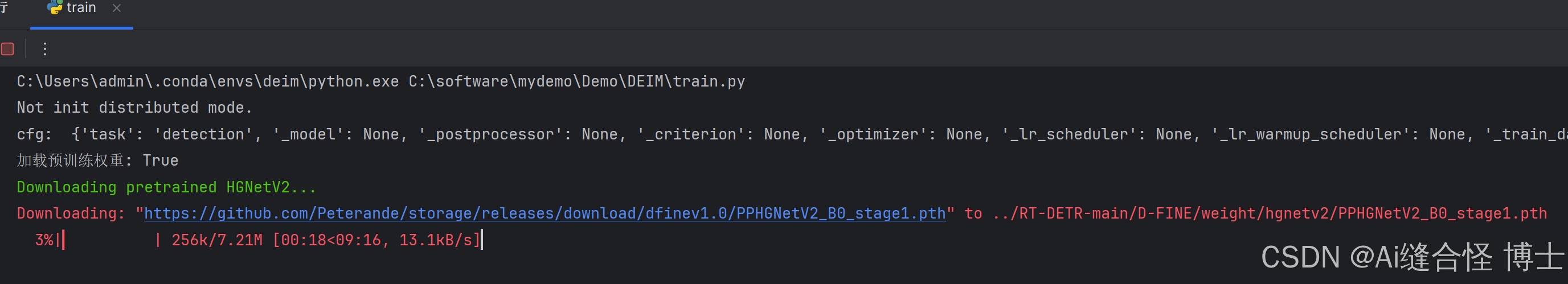 第一次运行,默认是加载预训练权重,所以需要下载。(建议大家自己离线下载比较快,或是等它自动在线下载完,在线下载慢一些),在此处演示我关闭了加载预训练权重变量。