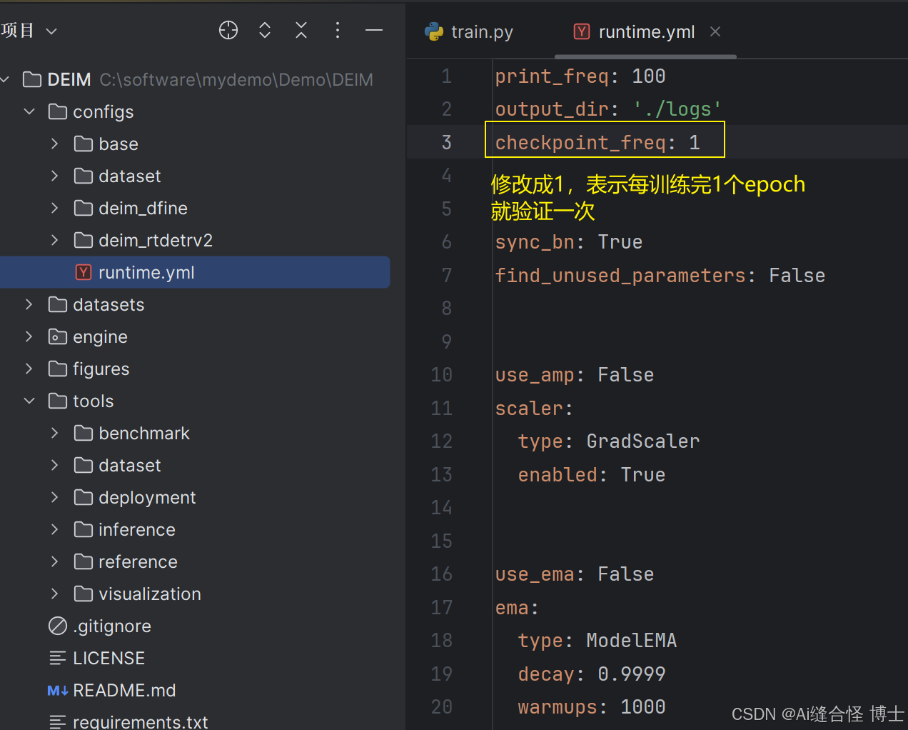 第五步:修改DEIM\configs\runtime.yml文件中的参数,方便观察
