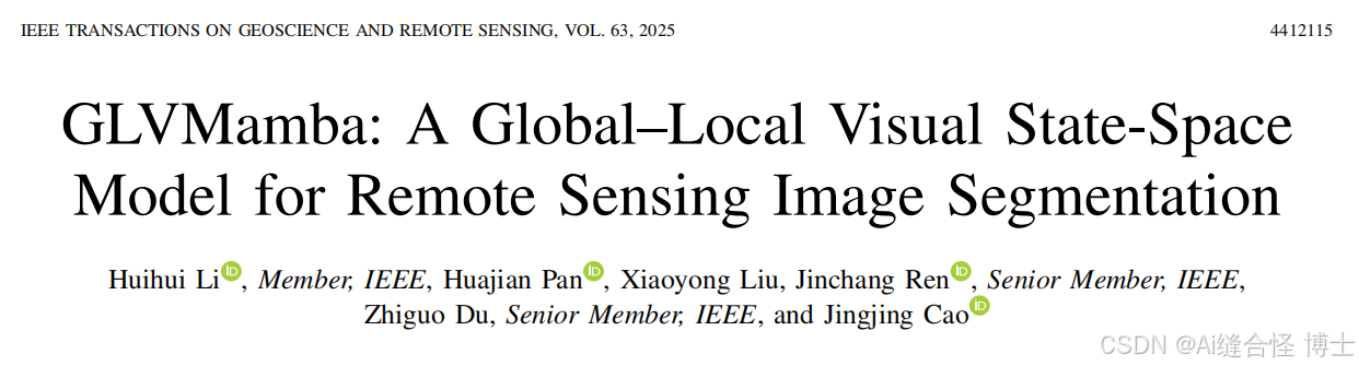 摘要:遥感图像(RSIs)的语义分割在采用深度神经网络后取得了显著进展,利用卷积神经网络(CNN)在局部特征提取方面的优势,以及变换器在全局信息建模方面的能力。然而,由于CNN在长程建模能力上的局限性以及变换器的计算复杂性限制,遥感(RS)语义分割仍然面临诸如严重空洞、边缘分割粗糙,以及光照、阴影等因素导致的误检甚至漏检等问题。为了解决这些问题,我们提出了一种称为GLVMamba的视觉状态空间(VSS)模型,该模型使用CNN作为编码器,并以提出的全局-局部VSS(GLVSS)模块作为核心解码器。具体而言,GLVSS模块引入了局部前向反馈和滑动窗口机制,以解决Mamba在邻近像素依赖建模不足的问题,从而在特征重建过程中增强全局与局部上下文的整合,提升模型的目标感知能力,并有效优化边缘轮廓。此外,我们提出了具有尺度感知的金字塔池化(SCPP)模块,以充分融合各尺度特征,并自适应地融合和提取区分性特征,从而减轻空洞和误检问题。通过GLVSS模块和SCPP模块,GLVMamba能够有效捕捉全局-局部语义信息和多尺度特征,实现高效且准确的遥感语义分割。</