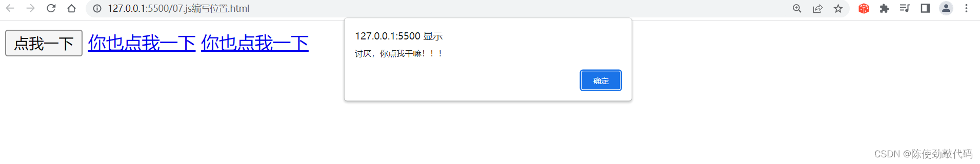 <button onclick="alert('讨厌,你点我干嘛!!!')">点我一下</button>