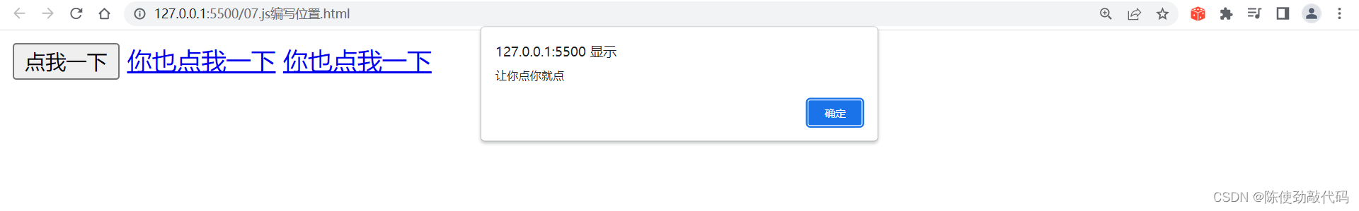 <a href="javascript:alert('让你点你就点')">你也点我一下</a>
