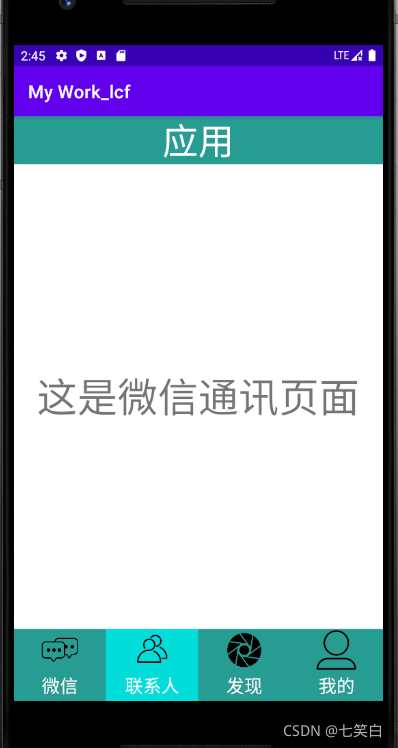 使用Android Studio编写一个类微信界面,要求有四个页面,分别为微信聊天界面,微信联系人界面,发现界面以及设置界面,实现点击相应的区域切换到相应的页面并且点击区域背景变色的功能