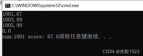 printf("num:%1d score:%5.1f",pt->num,pt->score);//输出第一个结点的成员值