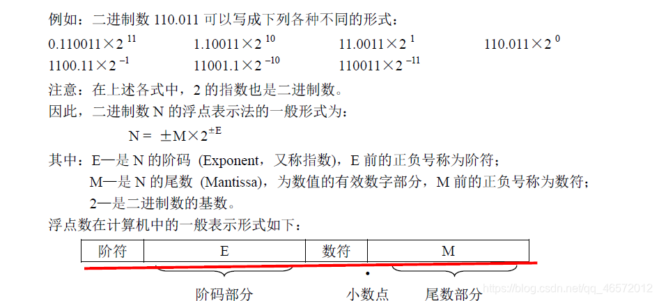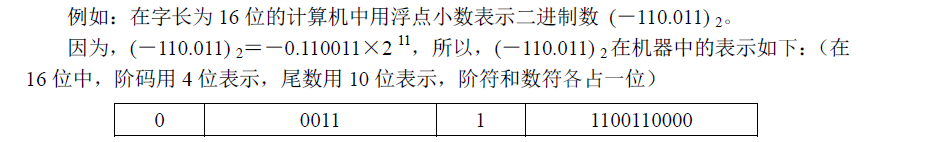 由上述表示形式可见,小数点的位置隐含在数符与尾数之间,即尾数总是一个小于 1的数。数符占一位,用于确定该浮点数的正负。阶码总为整数,用于确定小数点浮动的位数。阶符也占一位,用于确定小数点浮动的方向。若阶符为正,小数点向左浮动;若阶符为负,小数点则向右浮动。