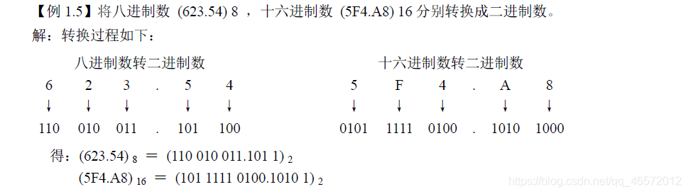 将八进制数、十六进制数转换成二进制数的方法是上述转换方法的逆操作。只要将每位
