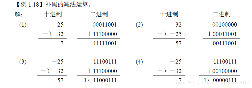 由上述4个例子可以看出,补码的减法运算实际上是通过对减数求补的方法把减法运算