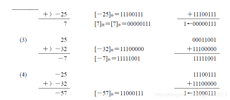 转换成了加法运算,得到的计算结果也都是正确的。在(3)和(4)两个例子中,与补码加法运