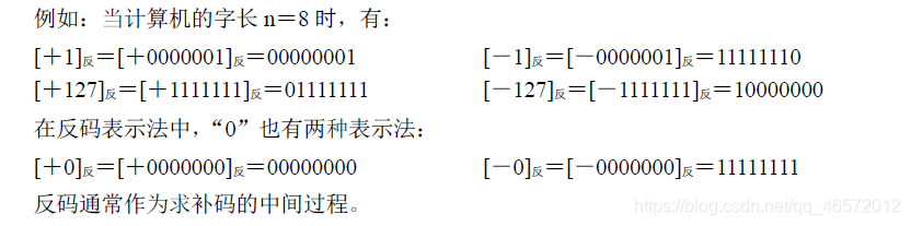 机器数的反码表示可以很容易地从原码得到。当机器数为正数时,其反码与原码相同;