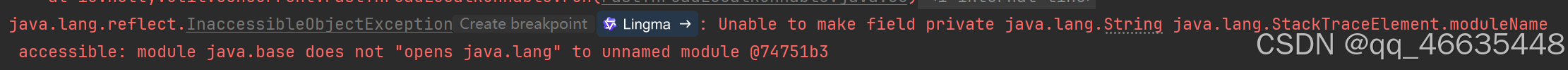 java.base 模块没有向未命名模块开放 java.* 包,导致反射操作无法访问 类 中的 一些 字段。