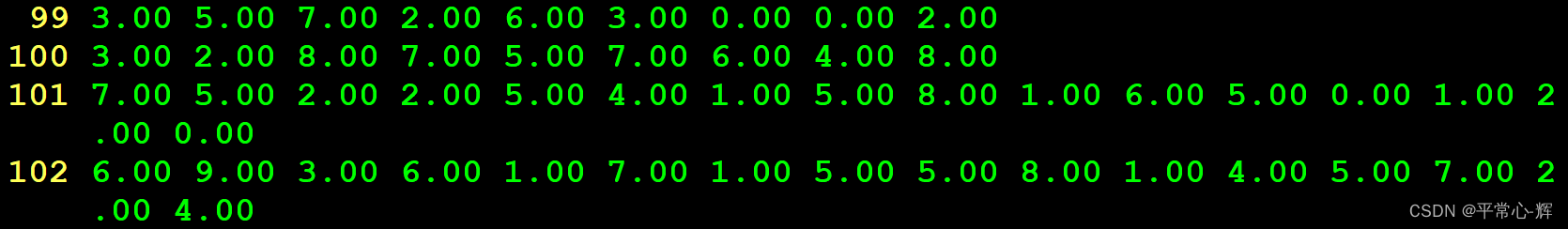 3、文件的每一行都是一个矩阵,每个矩阵的元素之间用空格分开。