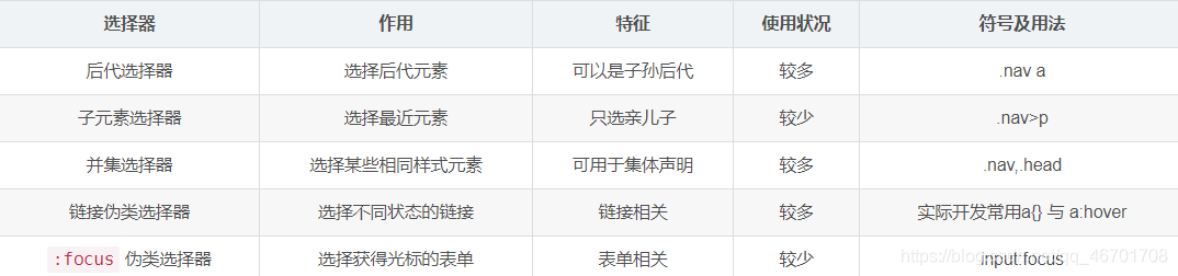 焦点就是光标,一般情况 <input> 类表单元素才能获取,因此这个选择器主要针对表单元素来说