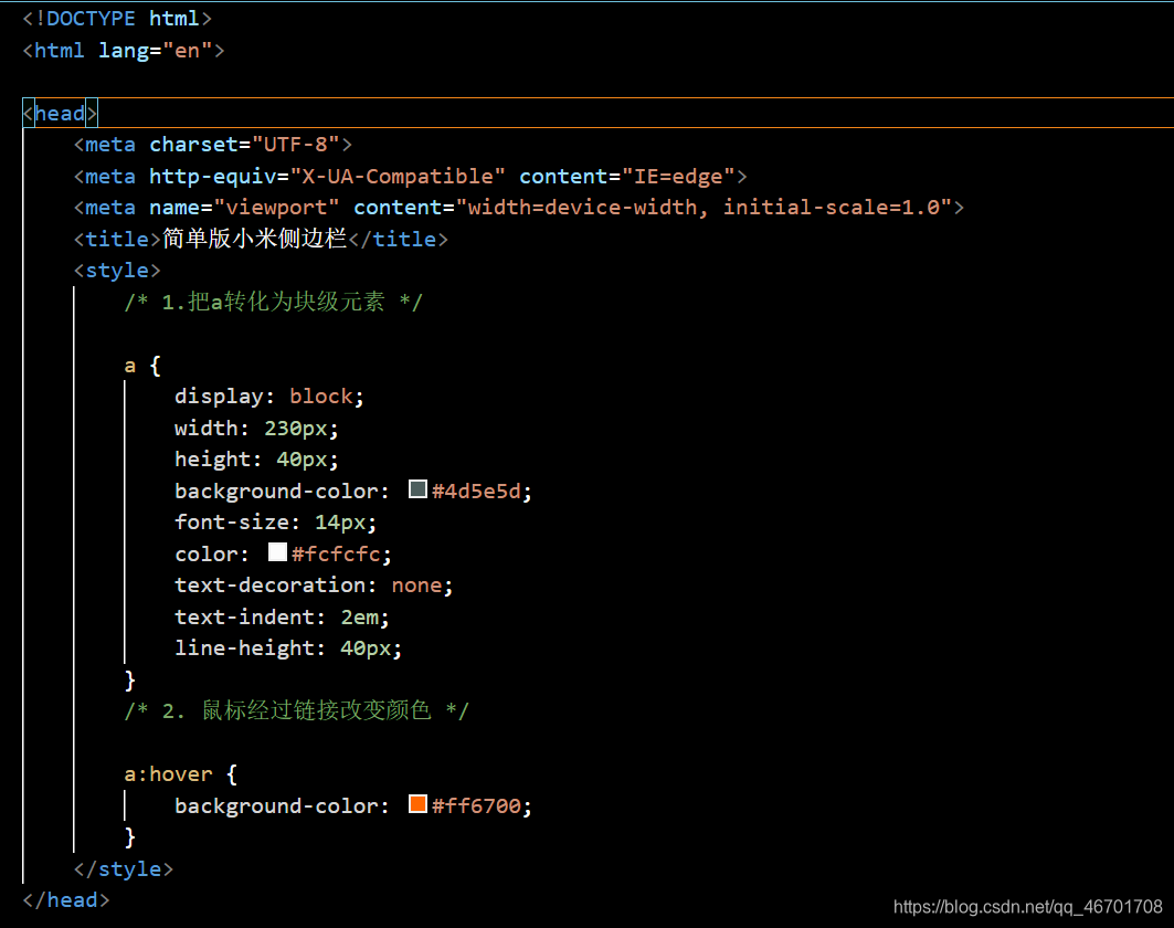 <a> 链接在浏览器中具有默认样式,所以我们需要给链接单独指定样式