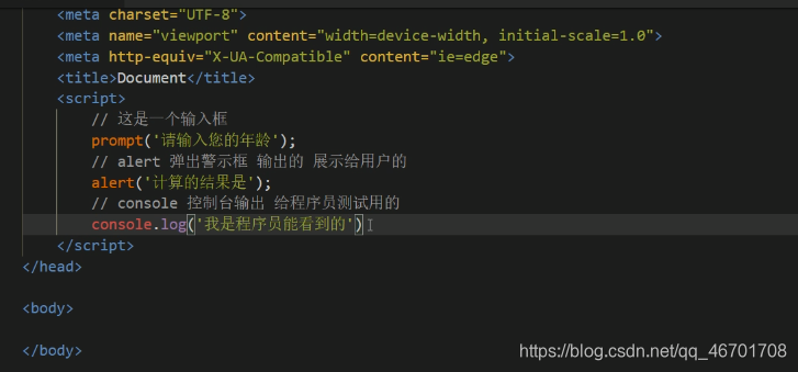 JS引擎:也成为JS解释器,用来读取网页中的JavaScript代码,对其处理后运行,比如chrome浏览器的V8