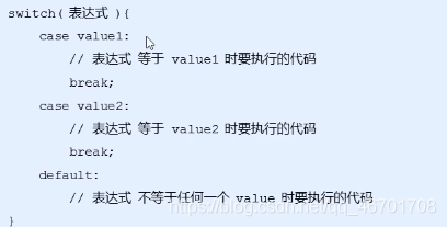 switch语句也是多分支语句,它用于基于不同条件来执行不同的代码。当要针对变量设置一系列的特定值的选项时,就可以使用switch