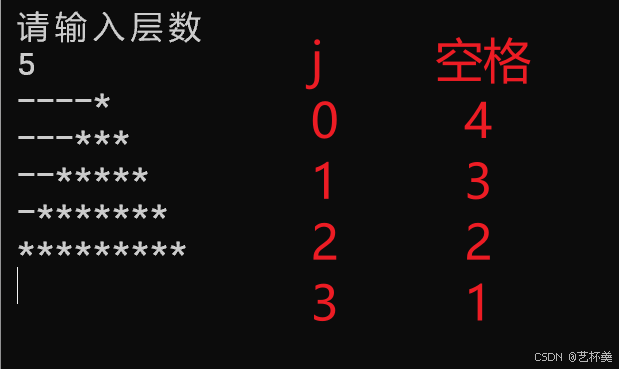 因为每过一轮,控制总体的 i 就会加1,而空格也会减少1,所以可以直接减 i