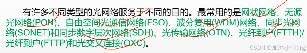 光网络:介质:光纤,技术:WDM 路由方式:有特定性协议控制光交换机