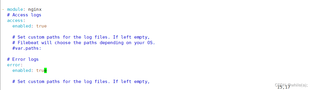 var.paths:属性进行配置。var.paths接收的值是一个包含一个以上的日志绝对路径列表。接收的值是一个数组
