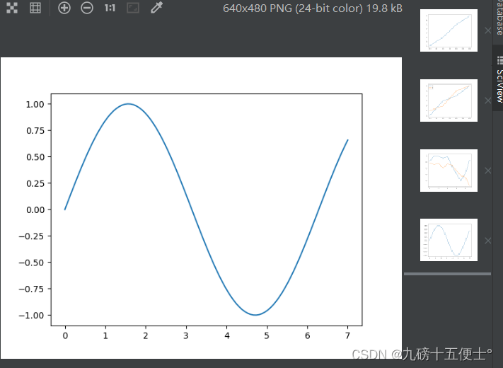 x = np.linspace(0, 7, 100) # 从0到7共100个点