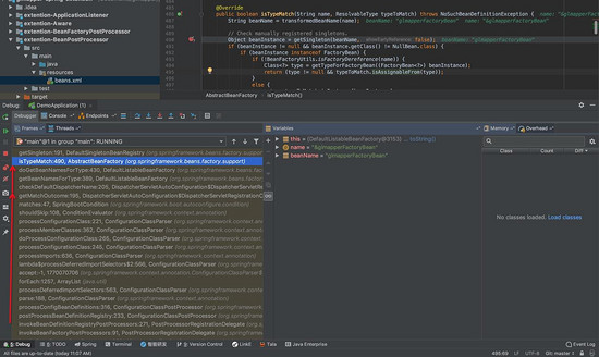 基于上面提到的点,结合本案例,来 debug 看下 FactoryBean typeCheck(类型检测) 机制导致的 BeanPostProcessor 不生效 的原因。