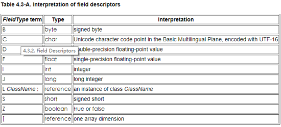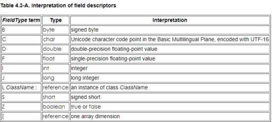 name_index 已经知道是什么意思了,我们直接来看 descriptor_index ,它的作用是表示一个有效的字段描述符或方法描述符: