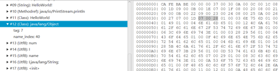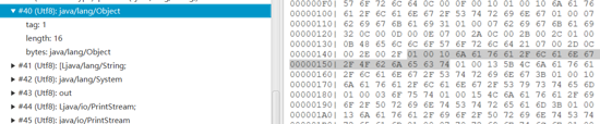 它的长度为 0x0010 = 16 ,所以往后一直读16个字节,得出它的名字为: java/lang/Object。