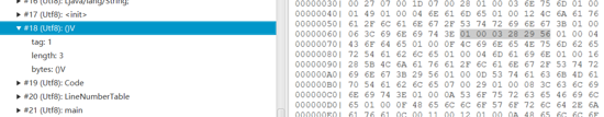 对于方法描述符,它有参数描述符和返回描述符,对于返回描述符,只是增加了一个 V ,它对应返回值为 void 。