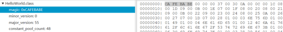 我们便可以看到在java文件下生成了一个 HelloWorld.class 文件,使用类文件解析器 classpy 打开该文件,可以看到文件的整体结构: