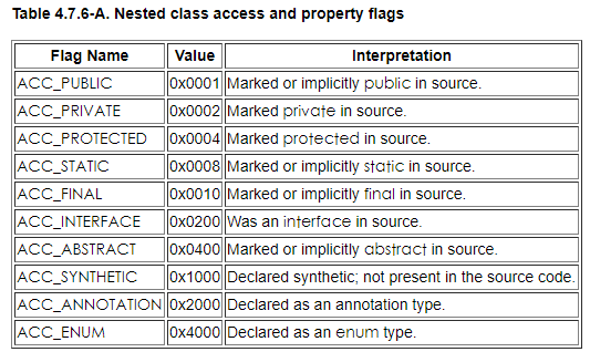 u2 inner_class_access_flags; // 内部类访问标识符