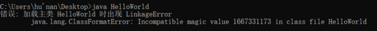 当我人为地将 CA FE BA BE 修改为 CA FE BA BA 时,让虚拟机对类文件加载 ,虚拟机在校验文件时会抛出以下错误: