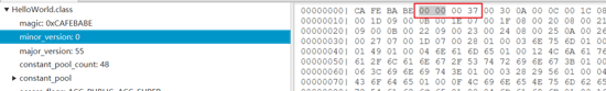 在我的Class文件中,版本号为 0x0037 ,换算为十进制为 55 ,即对应jdk11。