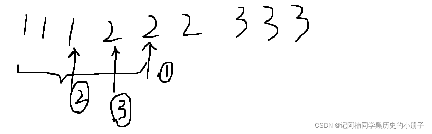 比如上面这个有序数组,我们目标找到小于等于2的最左侧的那个数字,首先进行二分,找到中间的2,等于目标数字(但是不确定它是不是最左侧的),我们选择左半边的数组再进行二分,得到1,小于目标数字,说明目标数字在它的右边,我们以它为左边边界,前一个2作为右边边界,继续进行二分,等于2,然后发现它的左边只有1个1,得出我们要找的目标数字。(ps:它与前一个事例的一个重要区别,它必须二分到底,才得到我们的结果)