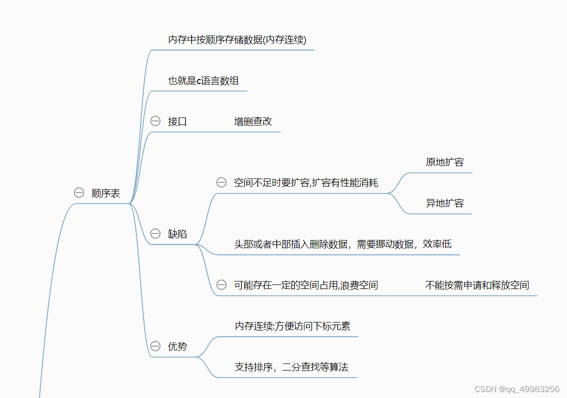 顺序表是用一段物理地址连续的存储单元依次存储数据元素的线性结构,一般情况下采用数组存储。在数组 上完成数据的增删查改