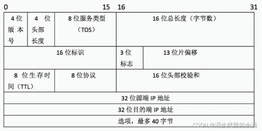 - 32位源地址和32位目标地址:表示发送端和接收端。