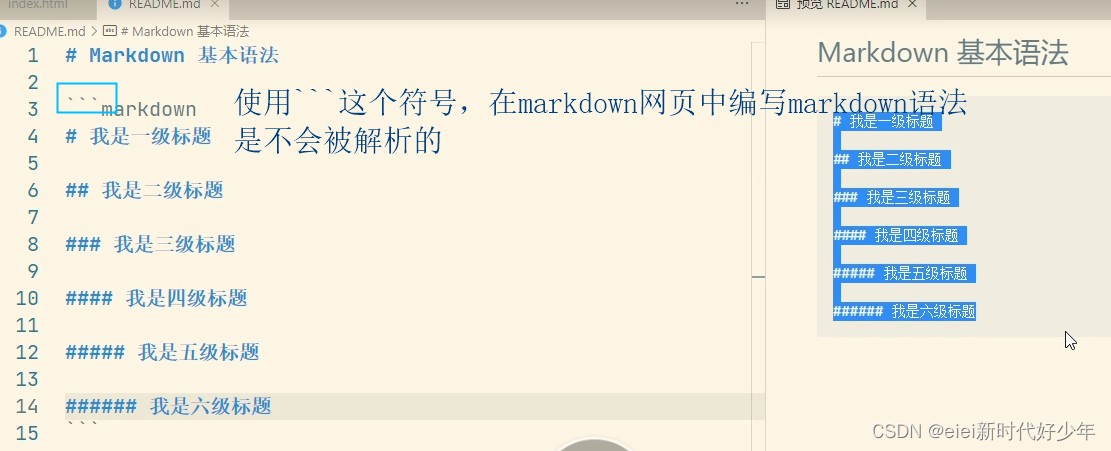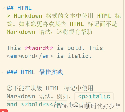 不可以在块级HTML标记中使用Markdown语法。是没有效果的。