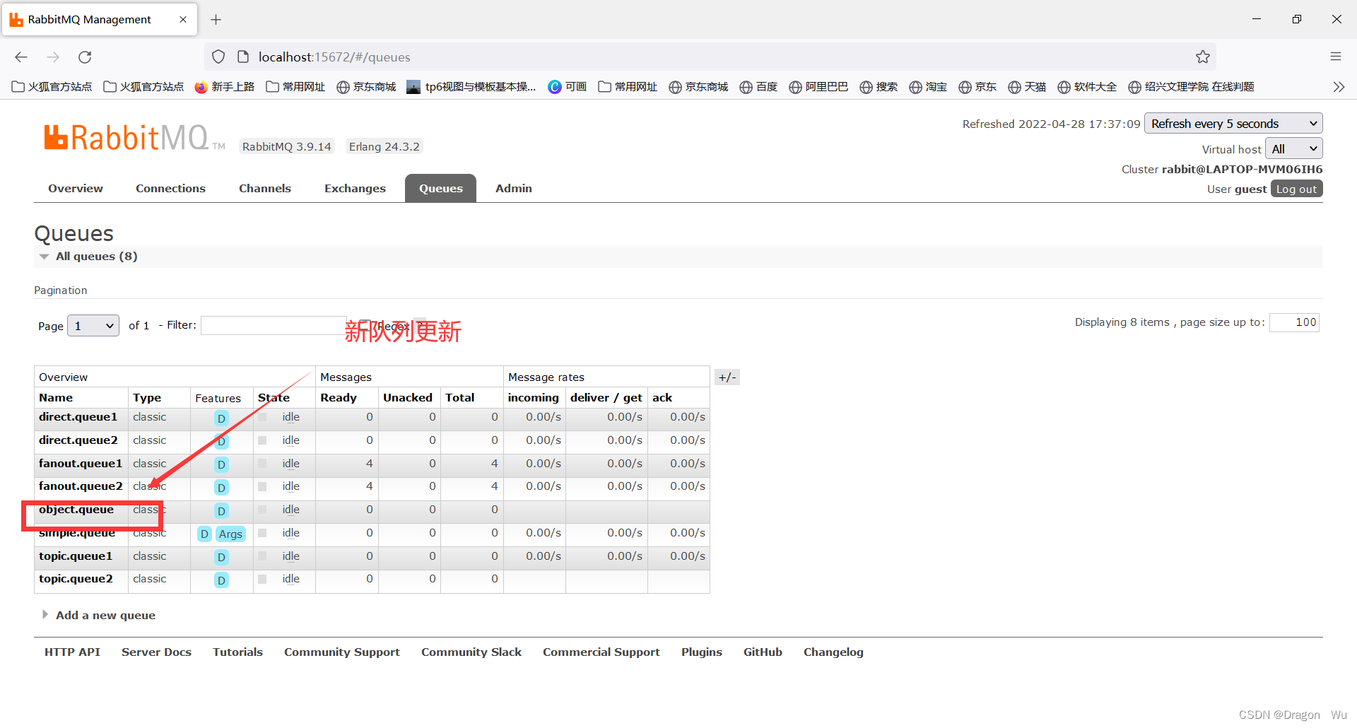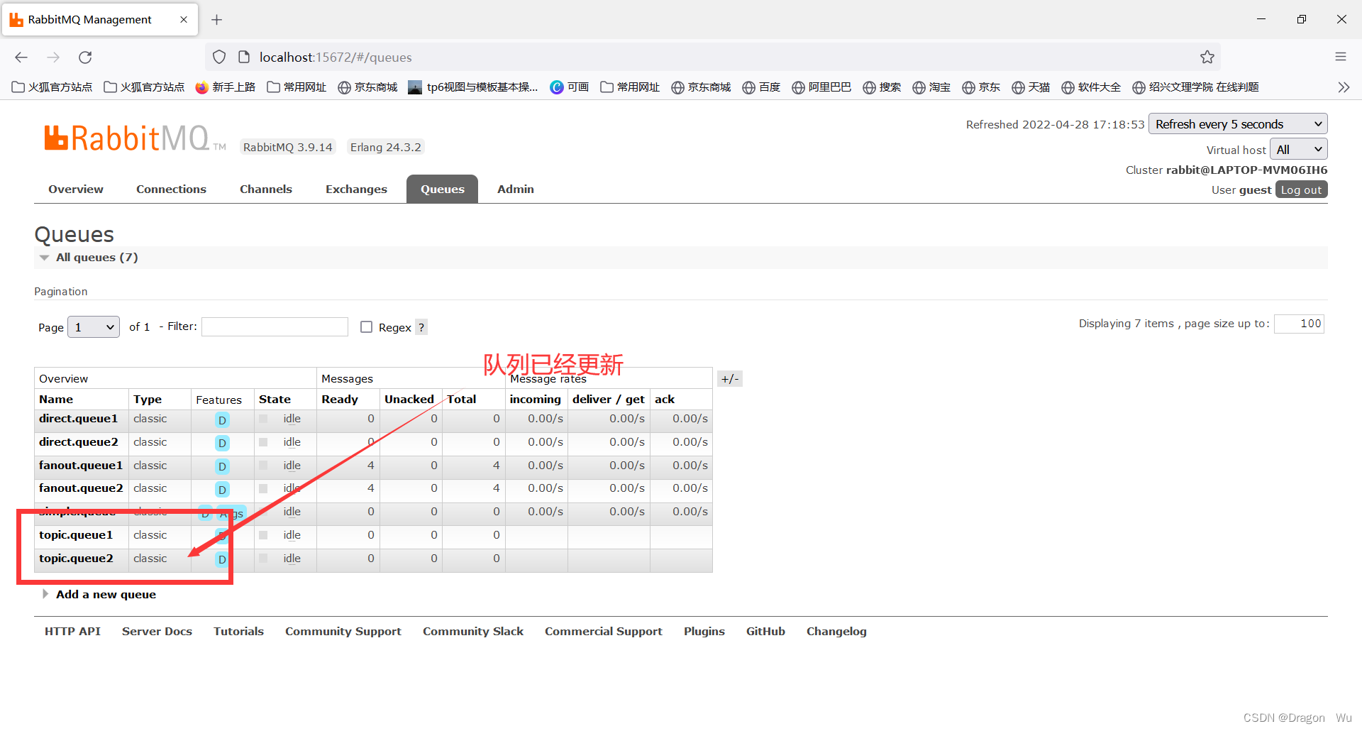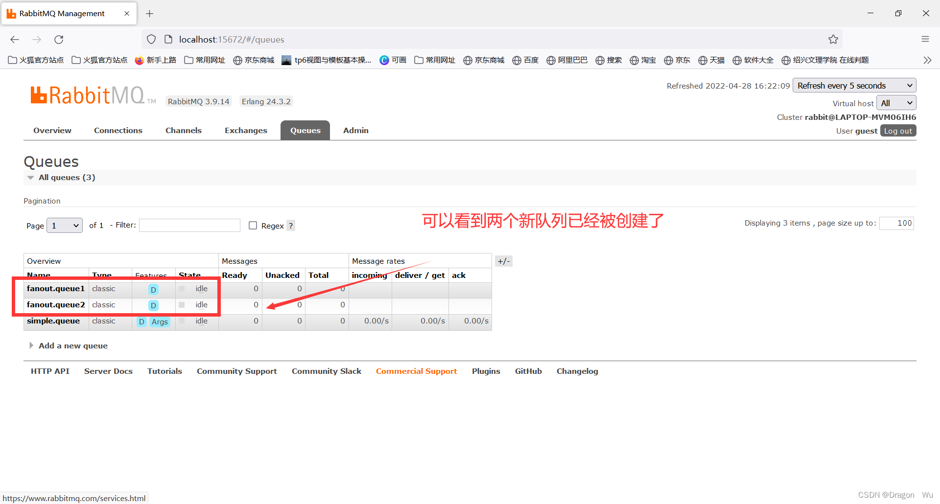 查看rabbitmq控制面板: