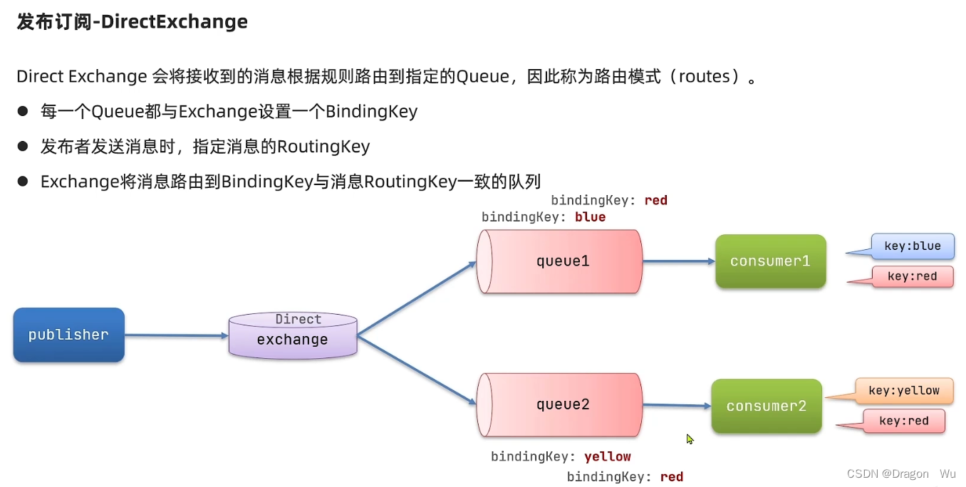 也就是说,direct模式下可以通过key值指定发给一个或多个队列。