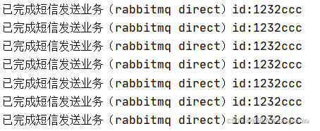 System.out.println("已完成短信发送业务(rabbitmq direct)id:"+id);