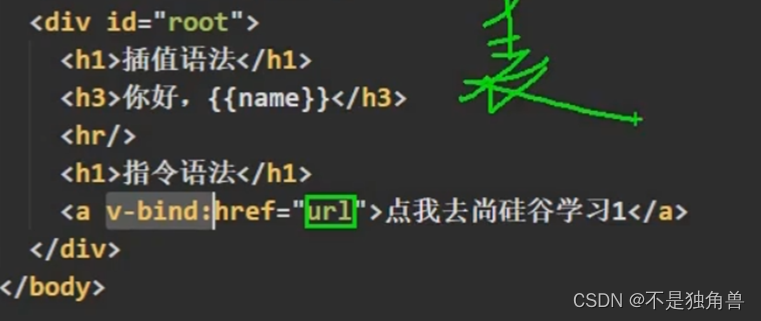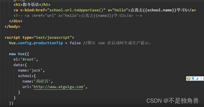加入v-bind:后,Vue就会把绿色框里的东西当成JS表达式去使用
