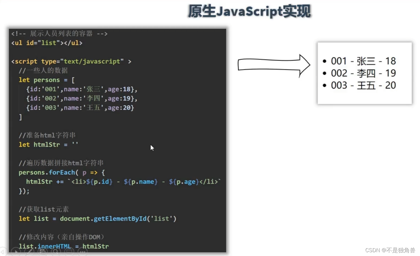 - 将数据放入Vue实例中,以后修改数据的时候,可以自动更新,避免操作DOM