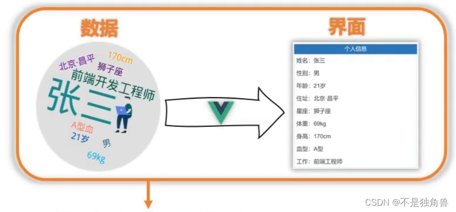 构建用户界面: 将数据通过某种办法变成用户可以看见的界面.