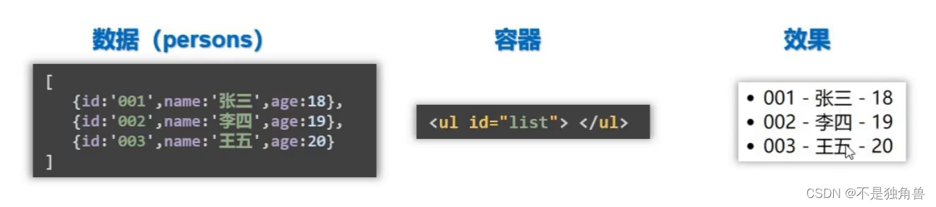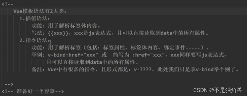- 一个Vue实例不能同时接管两个容器;一个容器只能被一个Vue实例接管.