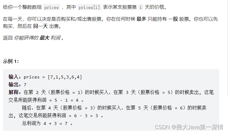 * 1.贪心:因为不限制买卖次数,只限制同一时间持有一支股票的话,那可以随时进行买卖