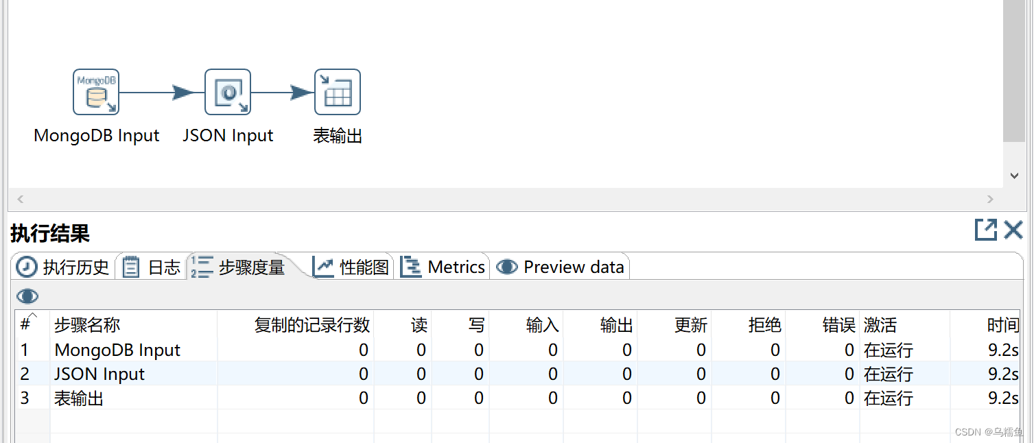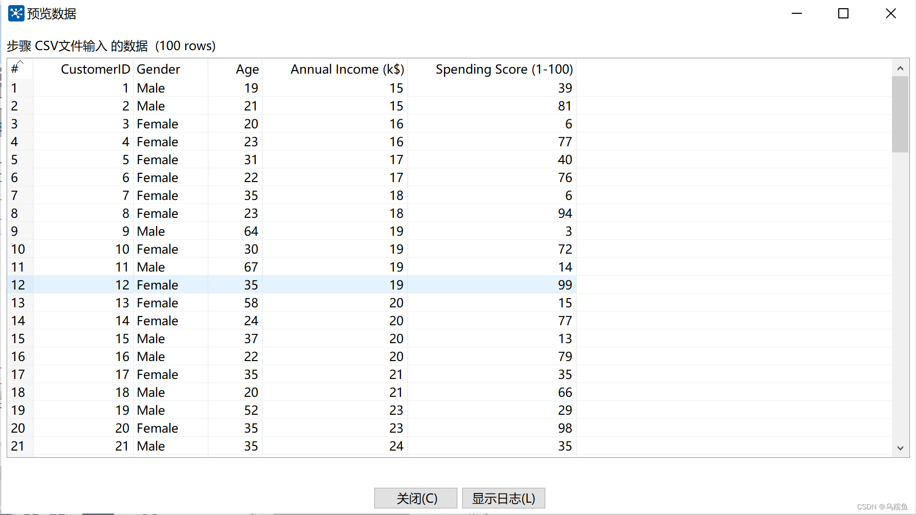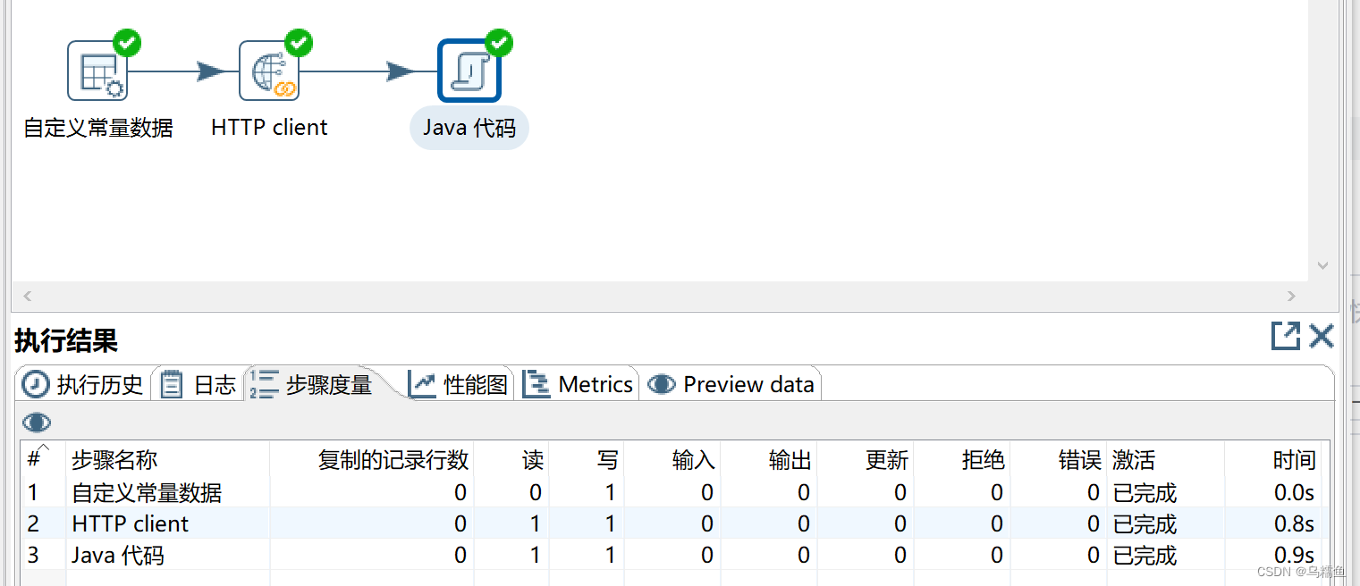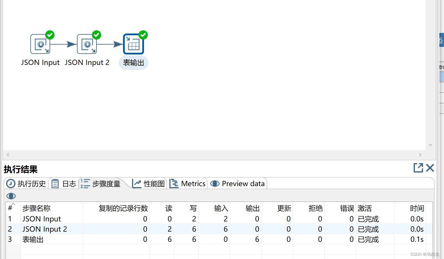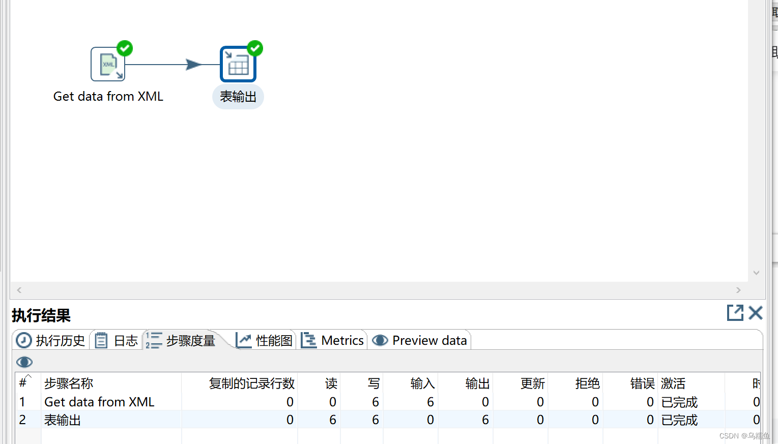 单击【预览】按钮,查看文件csv_extract.csv的数据是否抽取到CSV文件输入流中。