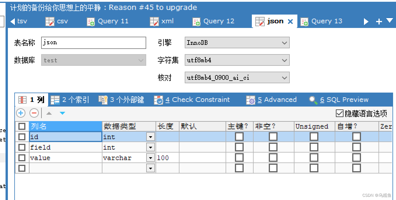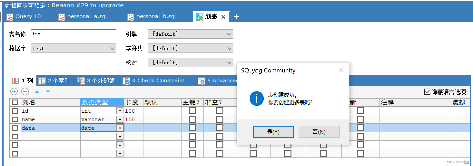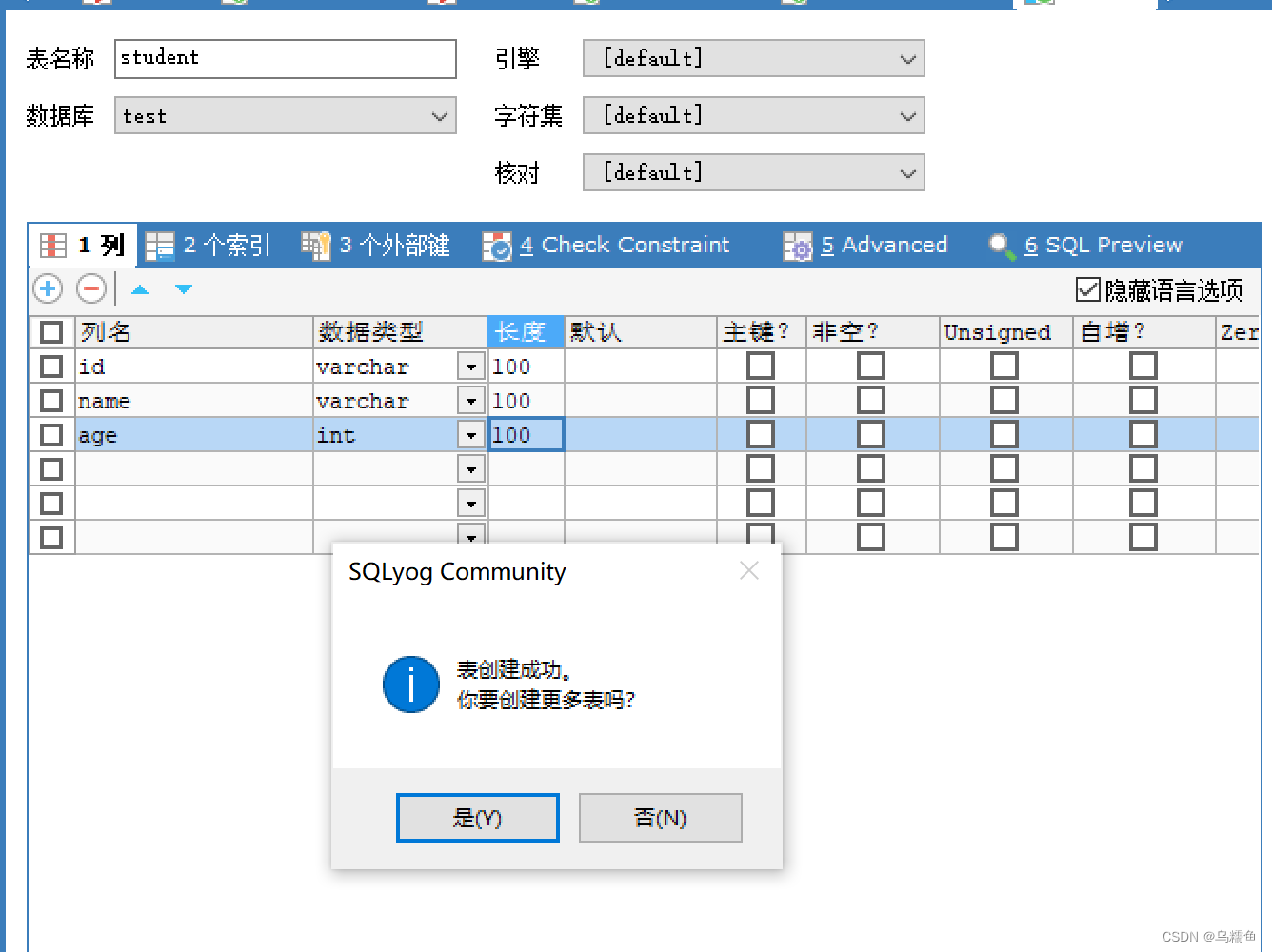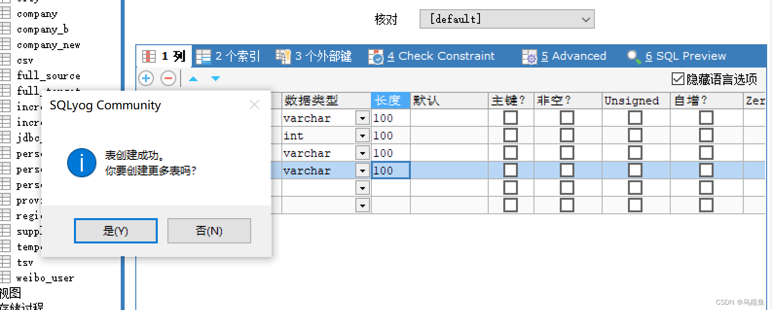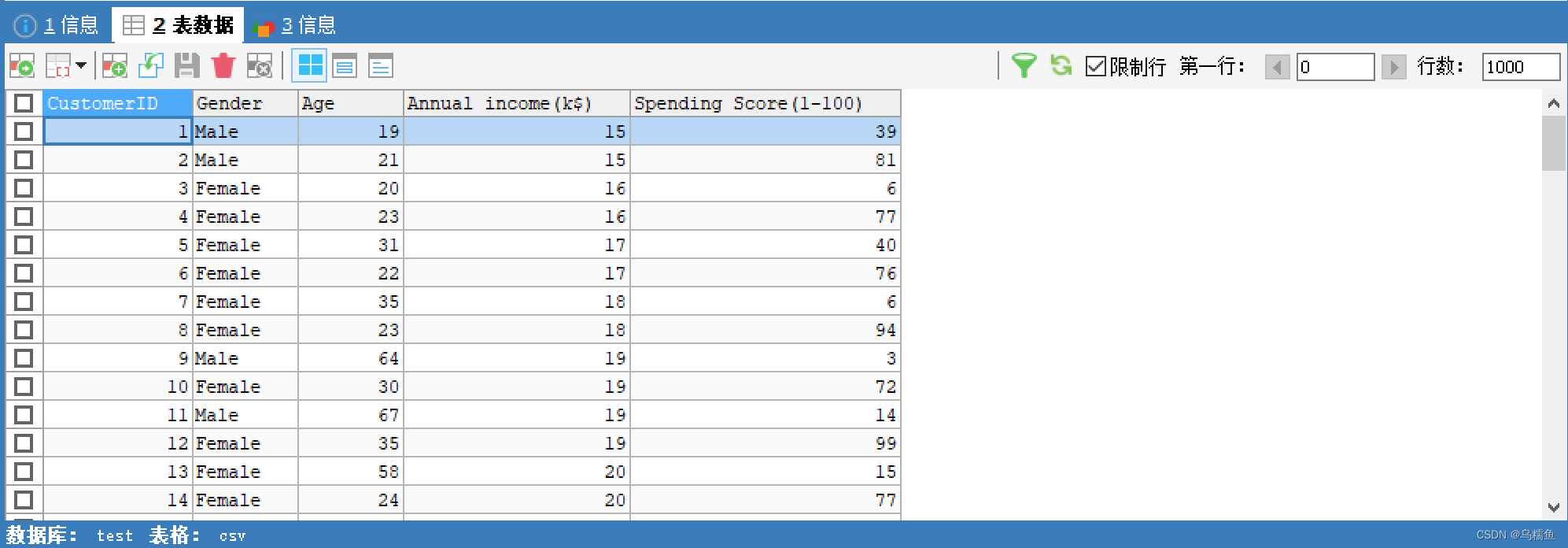 4.通过SQLyog工具,查看数据表csv是否已成功插入100行数据。